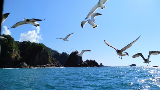 【20秒の動画(笹川流れ遊覧船からのカモメ)】
